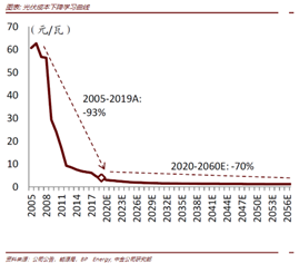 依据成本曲线大致测算以上装机需求,合计将带来2020~2060年累计55万亿元的国内绿色能源投资空间。其中,国内光伏新增装机20万亿元,风电新增装机14万亿元,核电新增装机5万亿元,储能新增装机7万亿元,清洁制氢新增装机9万亿元。叠加海外光伏新增装机47万亿元也主要由国内光伏产业链承接,合计102万亿元的绿色能源投资。
