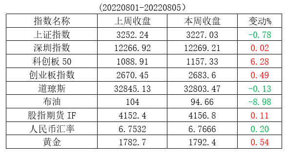 本周,受到地缘政治等不确定因素影响,三大指数涨跌不一,沪指跌0.81%,深证成指微红,创业板指涨0.49%,科创50则明显强于三大指数,周涨超6%。沪指在连续下探3150点回升确认支撑有效,周线收下长下影线后或将开启一段时期的温和反弹期。从成交量来看,周四两市成交额大幅萎缩,而指数小幅收阳,表明短线杀跌动能不足。值得一提的是,科创50指数本周连续五天收阳,成为近期市场最大的亮点。本周半导体板块无疑是市场中的明星,其周涨幅更是超过12%。申万半导体行业中,104只股票仅1只下跌,平均涨幅达15.58%,受到半导体板块大涨带动,本周电子元器件、计算机、软件等科技股逆市走强,现在还是游资在搞半导体,机构买的并不多。主要是机构还在抱团新能源,半导体持仓不到10%,周五半导体大涨7%,在过去3年有7次。但大涨后能否继续强势,其实并没有什么规律,涨跌各半。外交部宣布针对佩洛西窜台反制措施,关注后续事件发展脉络,未来中美间相互制裁措施可能会继续增加。技术上3150是不是阶段性低点还有待确认,关注3230-3330点短期压力,放量有效突破此区间,才能确认2022年第二轮上涨行情开启。下周将公告7月的社融数据将是一个重要观察窗口,如果中长期融资增速继续向好,那么将继续夯实下半年行情震荡向上的逻辑。下周两市将要披露中报的公司,超过200家,应持续关注成交量变化。下周是多空博弈较为激烈的一周,冲高回落概率较大,踏准了节奏将会有较好的收益,而踏不准节奏将承受短暂的阵痛。关注科创板50回落的上车机会;半导体有接力成为新热点的苗头,需要继续观察持续性能否带动市场;军工倾向于中线思路,短期可能以震荡为主;另外的市场变量是证券,有无持续性。
