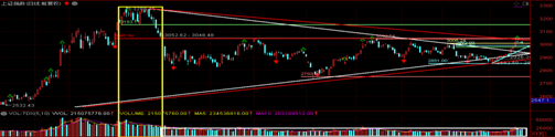 关注一下市场成交量,对比黄框里高点那段的成交量和白框里的三次冲击3050一线和目前的成交量,短期想攻上去估计很难!预计年底年初才有希望再攻一次3050的,明年一季度强势攻击3288点,如果能够突破,才能迎来真正牛熊转换的成功。